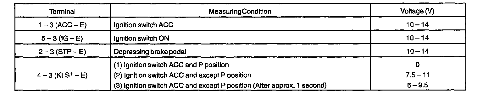 1. INSPECT SHIFT LOCK CONTROL UNIT ASSEMBLY