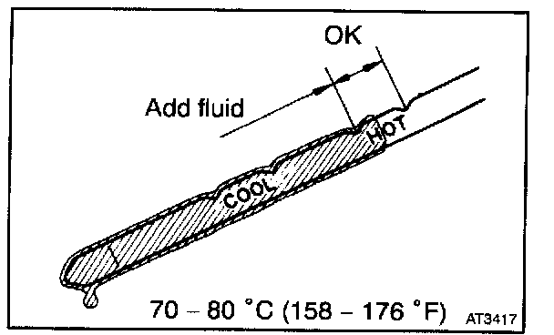 - Only use the COOL range on the dipstick as a rough reference when the fluid is replaced or the engine does not run.
