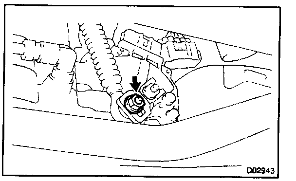 5. While holding the shift lever lightly toward the R position side, tighten the shift lever nut.
