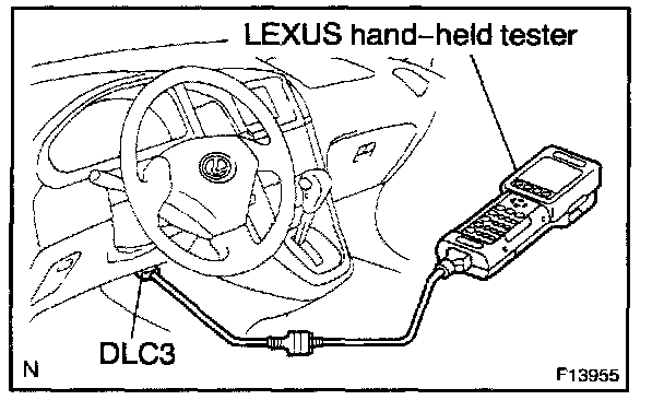2. Connect the OBD II scan tool or LEXUS hand-held tester to DLC3 at the lower of the instrument panel.