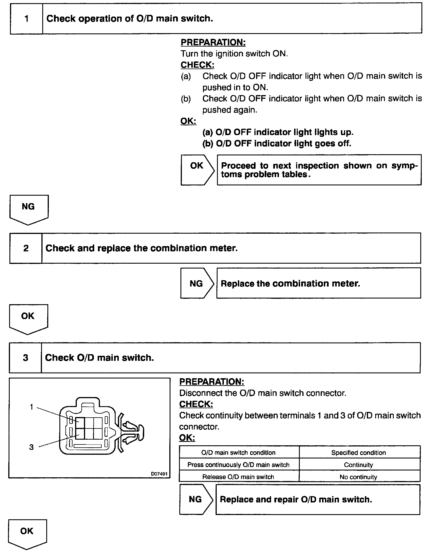 O/D Main Switch & O/D Off Indicator Light Circuit