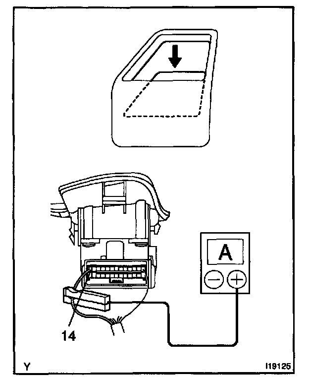 e. Check that the current increases up to approximately 14.5 A or more when the window stops going down.