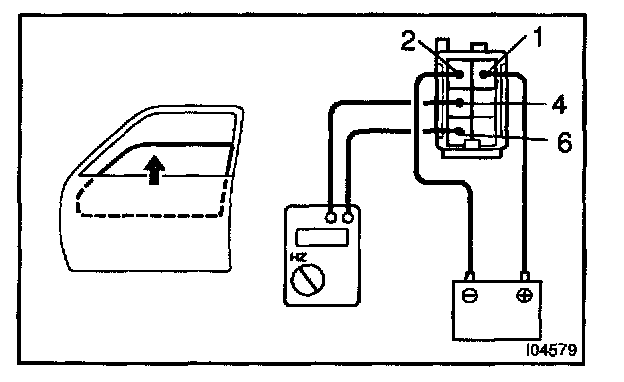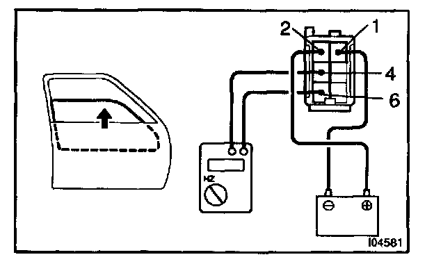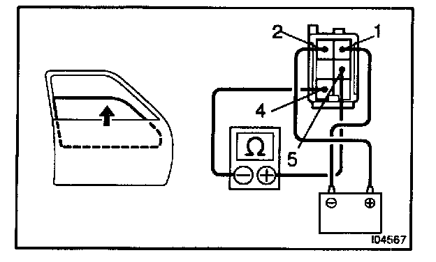 c. Connect the negative (-) lead from the battery to terminal 1 on the wire harness side connector, and raise the window to the fully position.