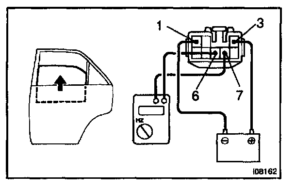 c. Connect the positive (+) lead from the battery to terminal 1 on the wire harness side connector, and raise the window to the fully position.