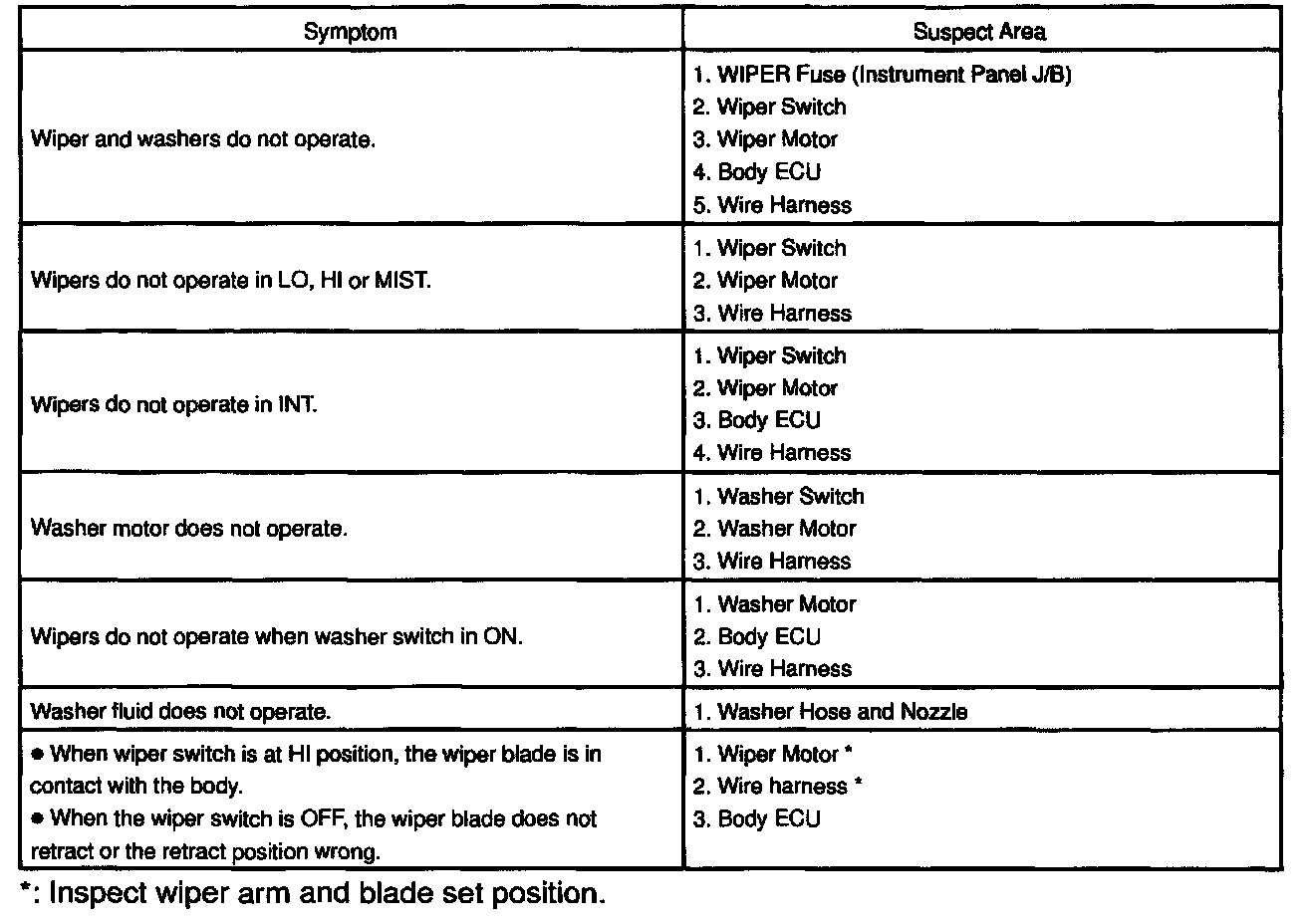 DIAGNOSIS BY SYMPTOMProblem Symptoms Table - Wiper And Washer System:
