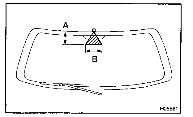 b. Check if the lower point where the washer fluid hits the back door glass is within the range of the wiping pattern (the are of the glass which is wiped by the wiper blades).