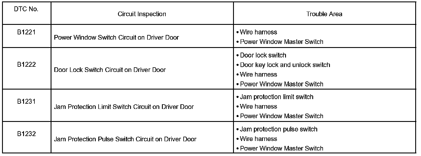 If a malfunction code is displayed during DTC check, find out the circuit corresponding to the code in the table and proceed to the appropriate image.