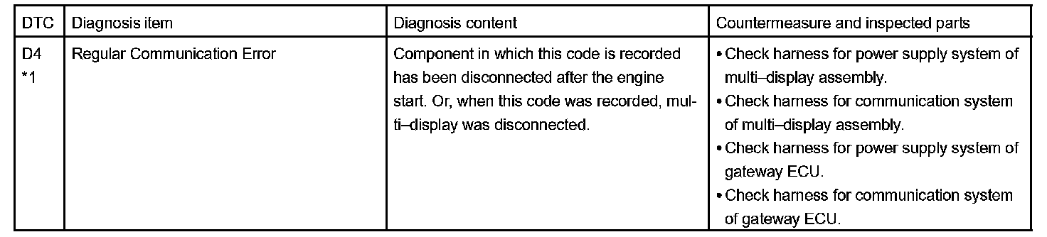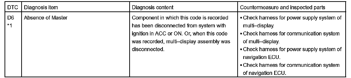 - *1: When 210 sec. has passed after pulling out the power supply connector of the master component with the ignition switch in ACC or ON, this code is stored.