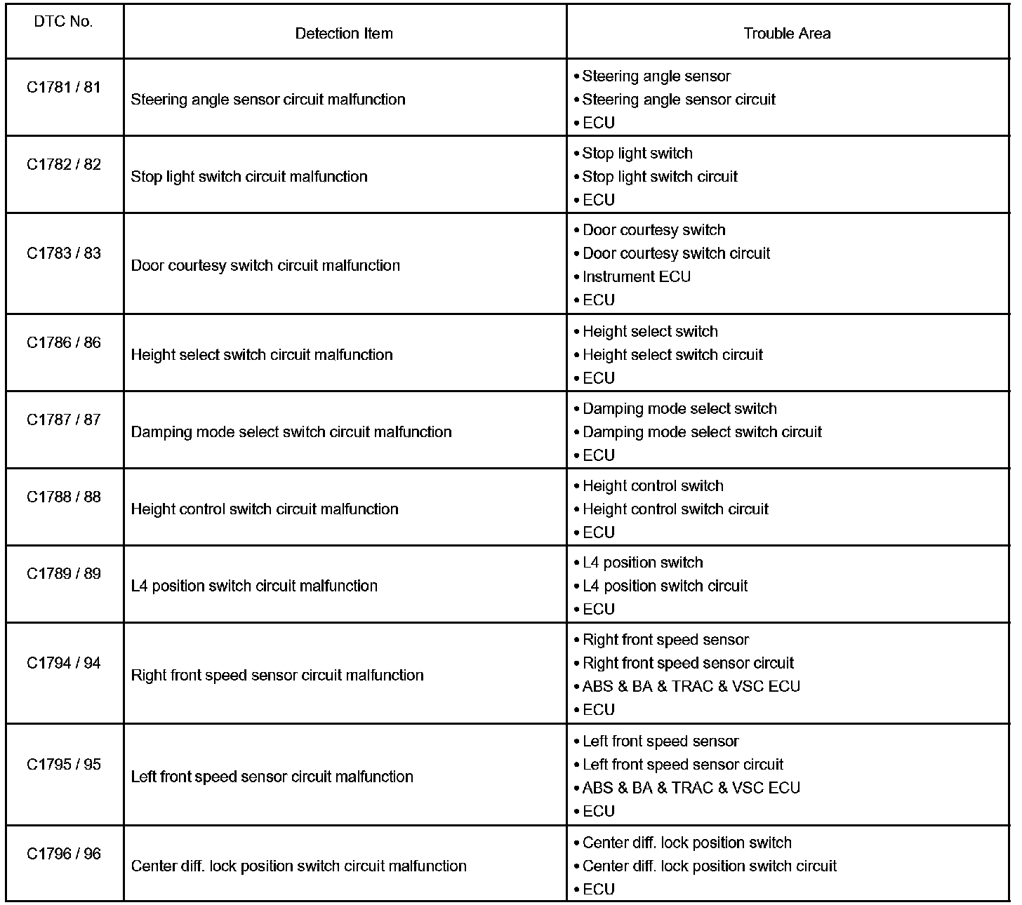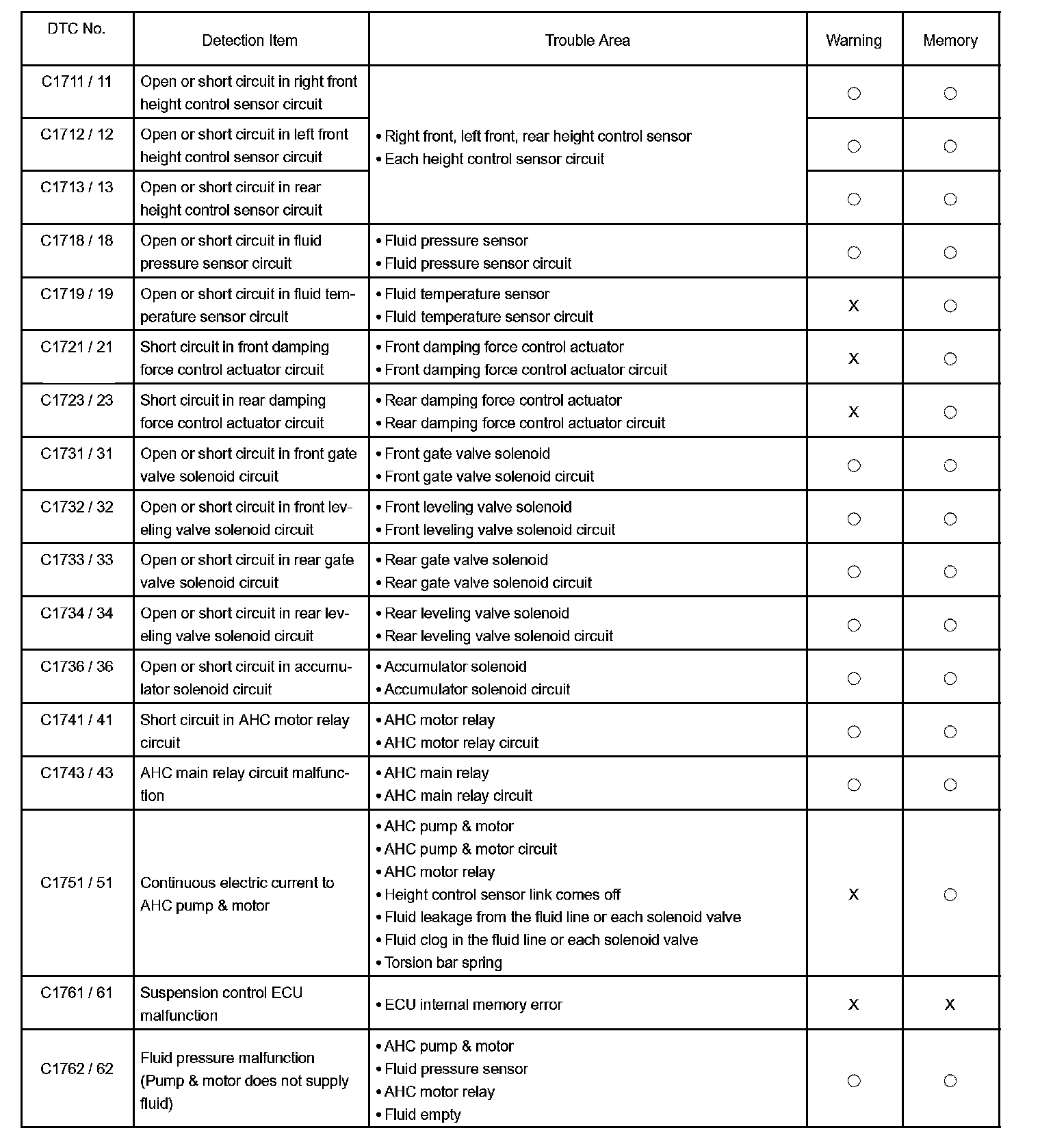 DIAGNOSTIC TROUBLE CODE CHARTC1711/11 - C1762/62: