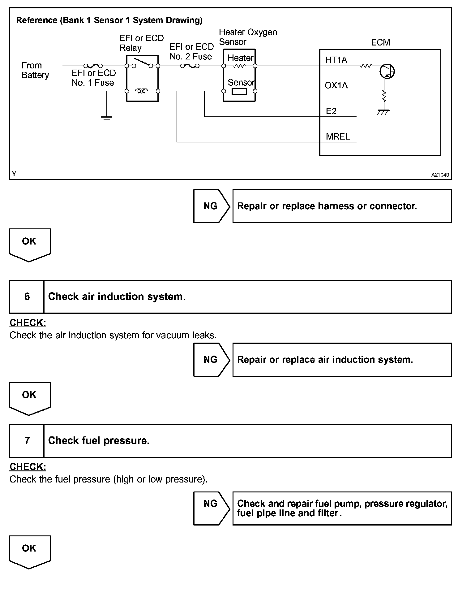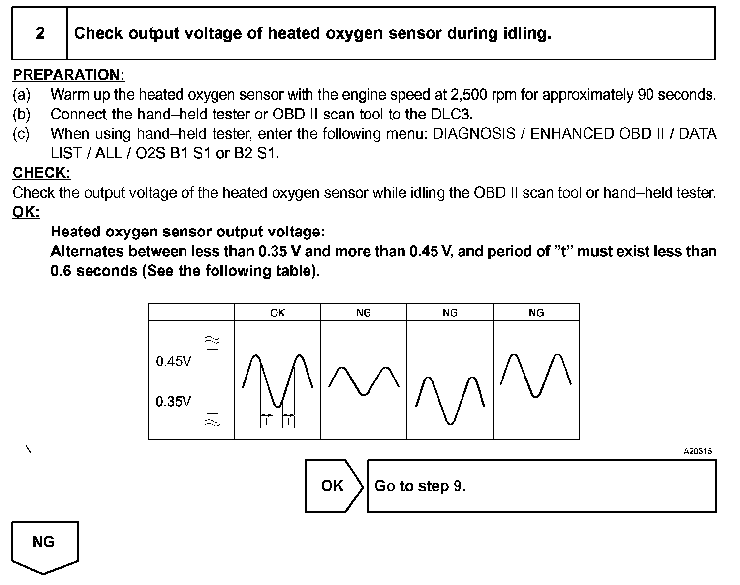 - A low heated oxygen sensor (sensor 1) voltage (0.4 V or less) could be caused by a lean air fuel mixture. Check for conditions that would cause the engine to run lean.