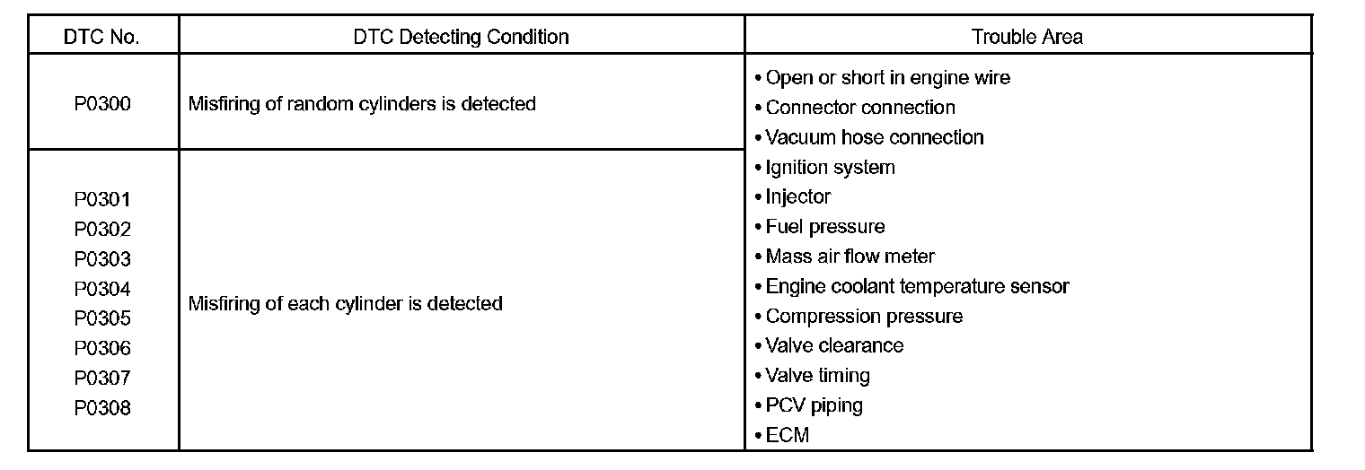 HINT: When several codes for a misfiring cylinder are recorded repeatedly but no random misfire code is recorded, it indicates that the misfires have been detected and recorded at different times.