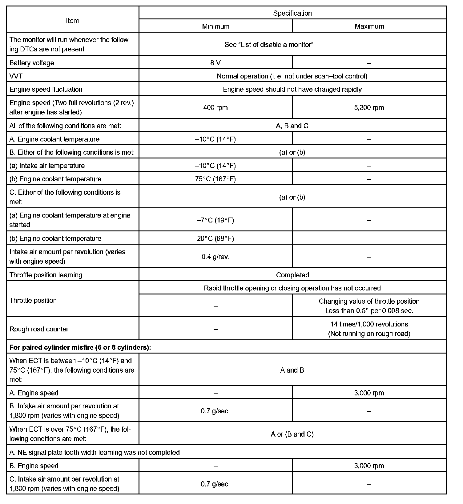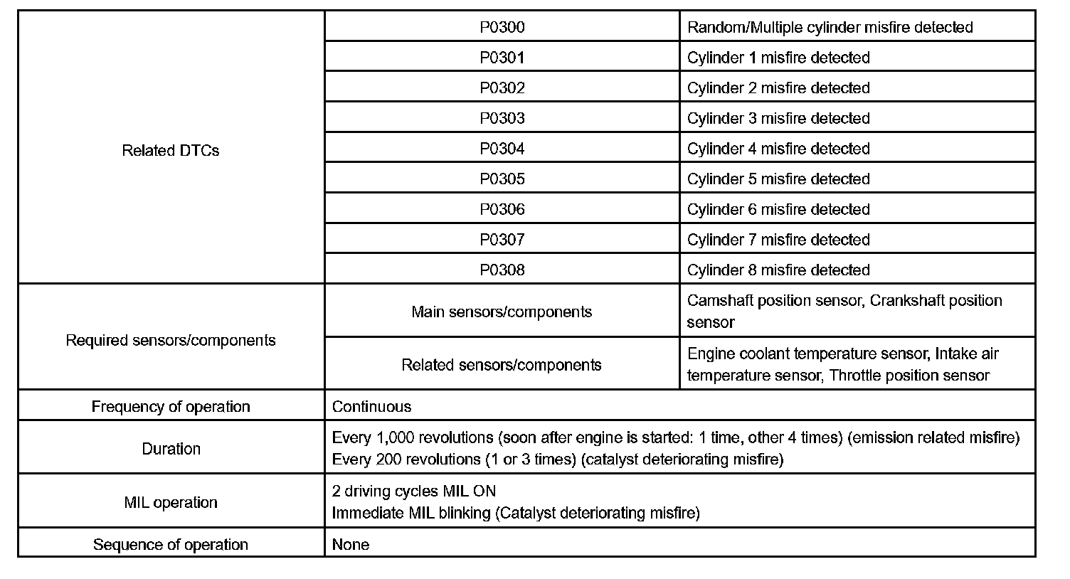 - On 6 and 8 cylinder engines, misfiring cylinder identification is disabled at high engine speed and only a general misfire fault code P0300 is stored instead of a cylinder specific misfire fault code (P0301 to P0308).