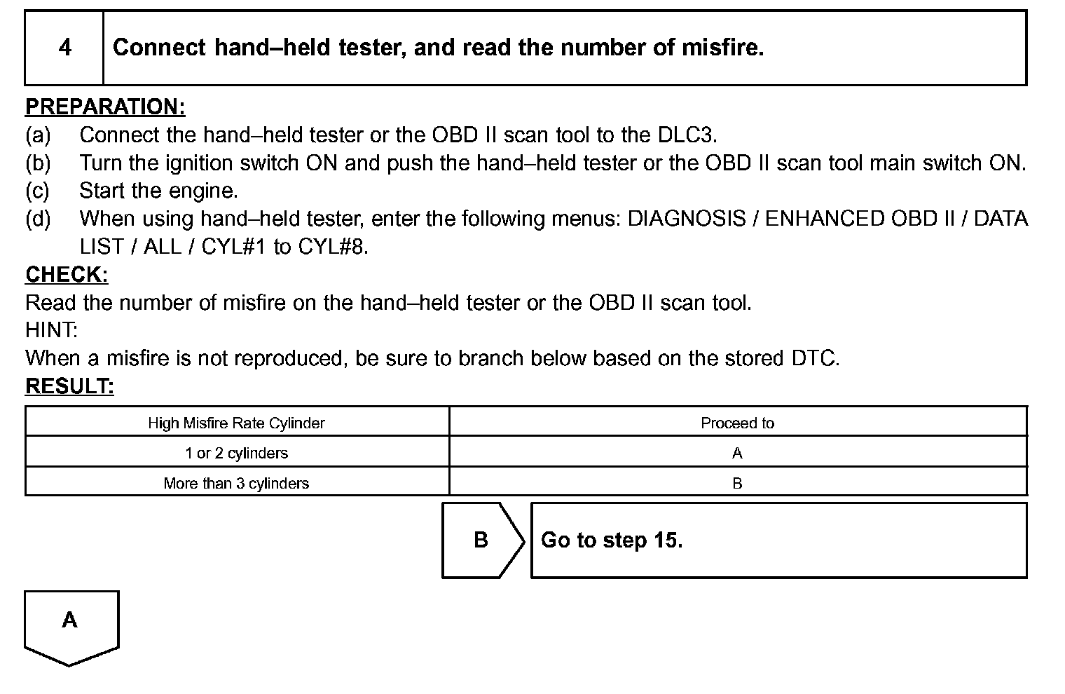 - Read the value of the misfire ratio for each cylinder. Or read the DTC.