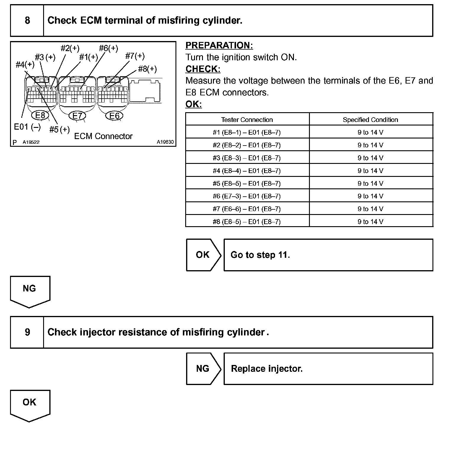 - If DTCs besides misfire DTCs are memorized simultaneously, troubleshoot the non misfire DTCs first.