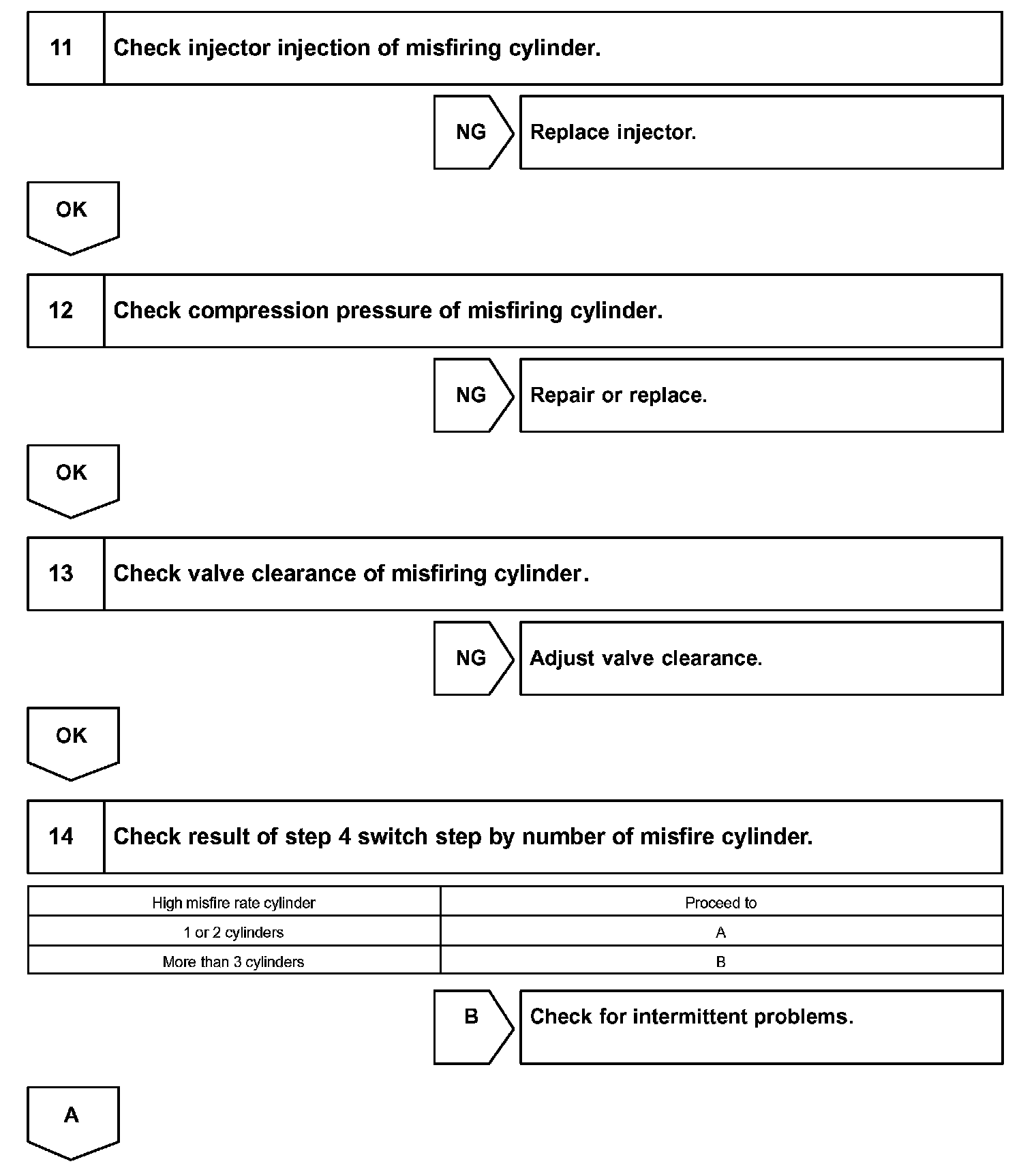 - Perform repairs on the cylinder that has a high misfire ratio. Or repair the cylinder indicated by the DTC.