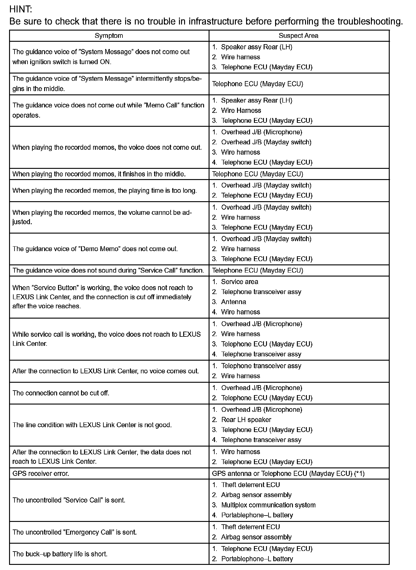 - If location is not confirmed, with the engine keep ON, call LEXUS Link Center at least 5 times every 2 minutes.
