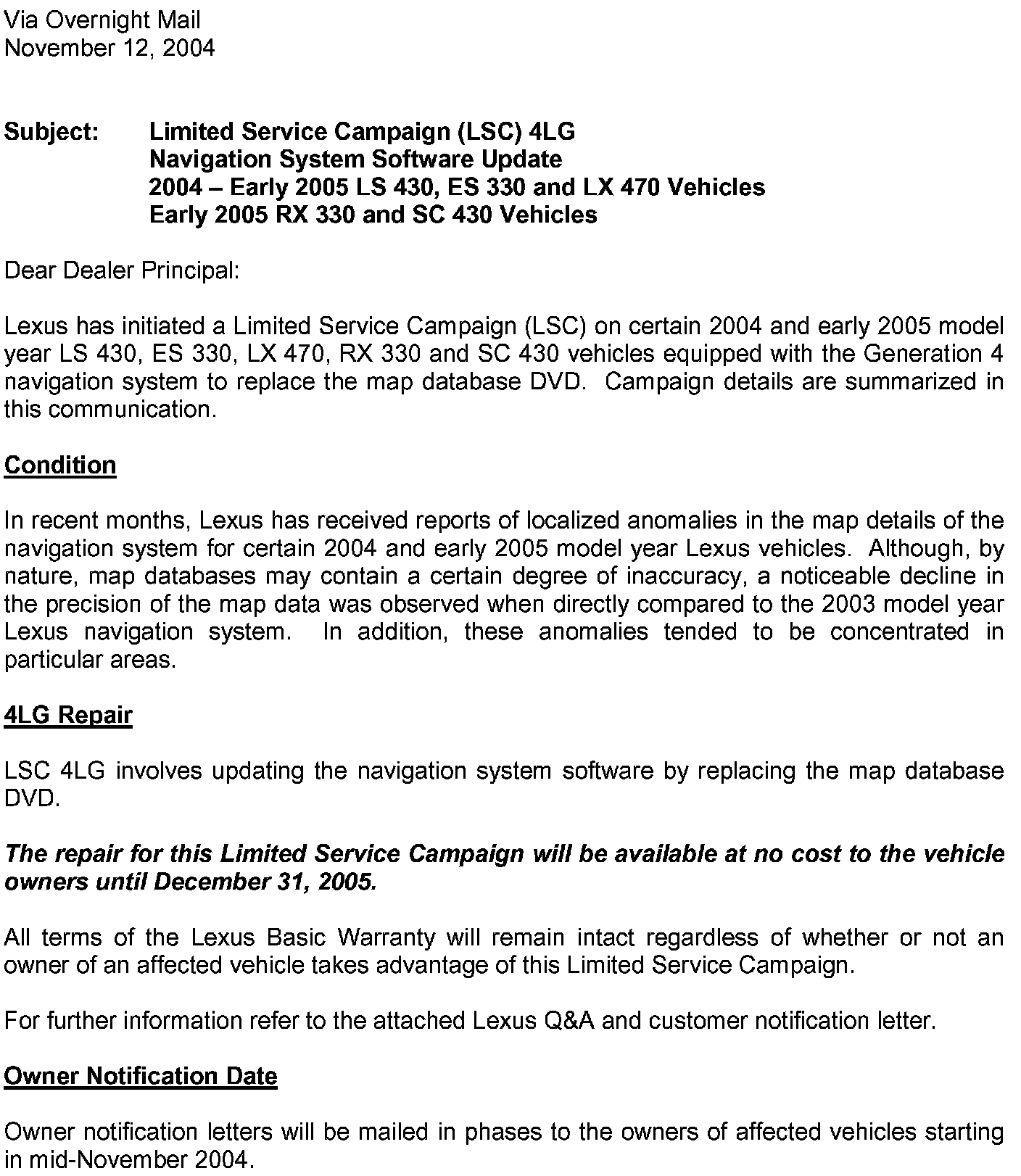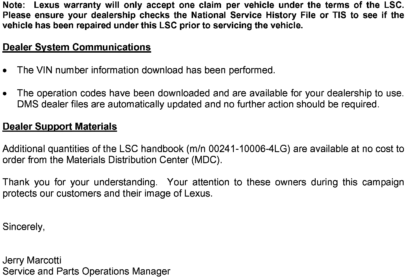 Dealer Letter