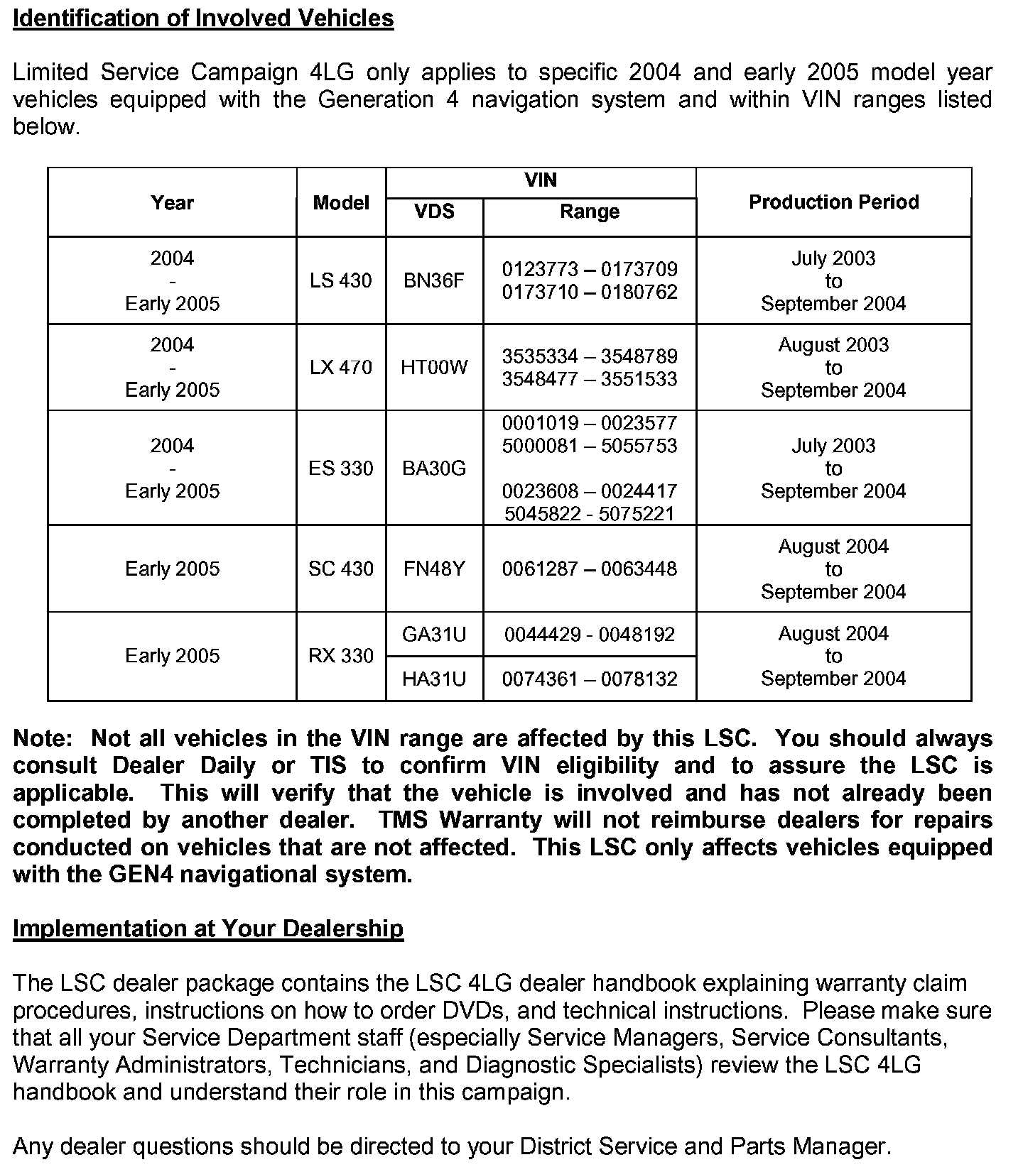 Technical Service Bulletins