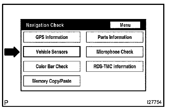 NAVIGATION CHECK MODE (VEHICLE SENSORS)HINT: