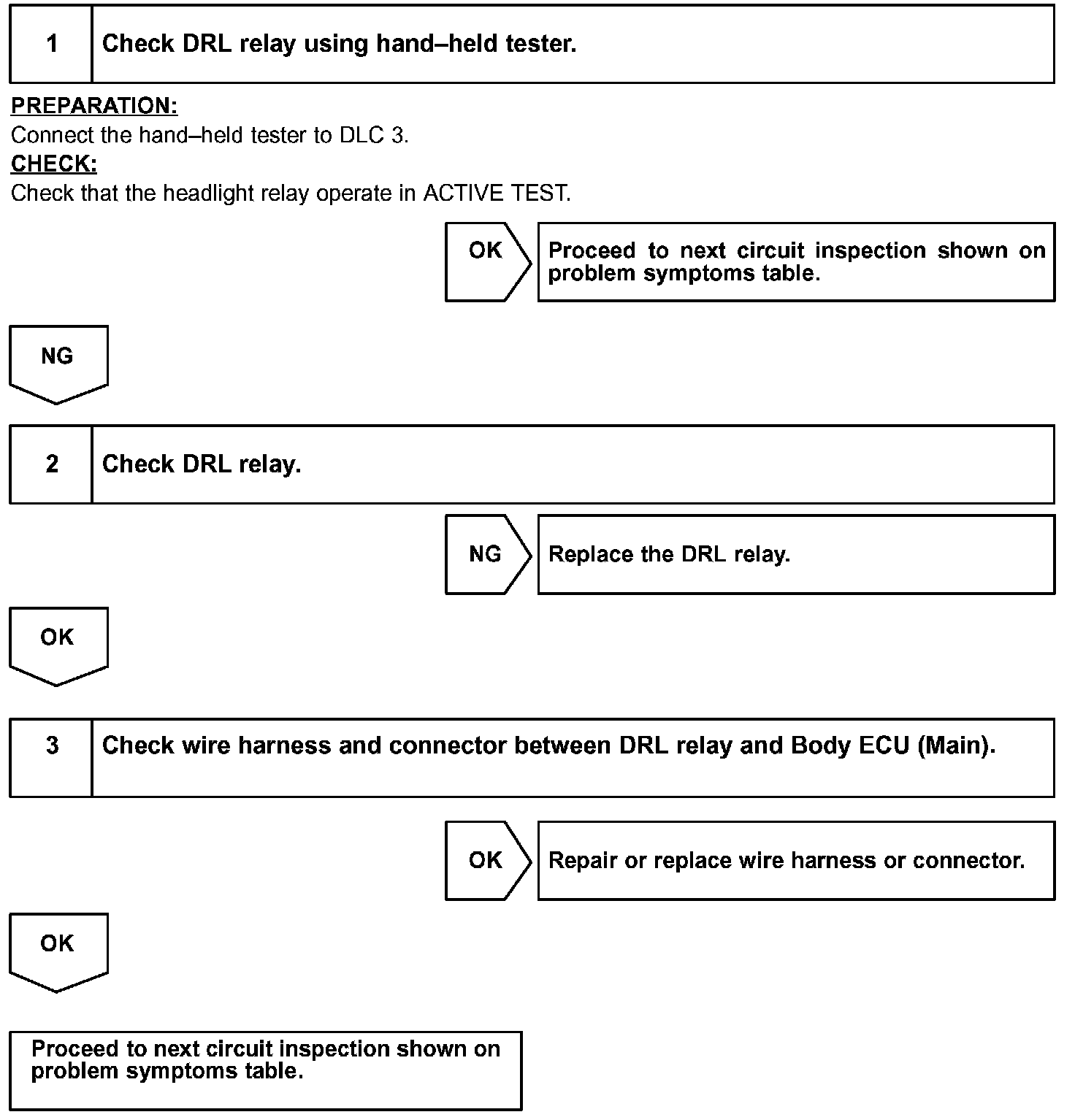 In case of using the hand-held tester, start the inspection from step 1 and in case of not using the hand-held tester, start from step 2.