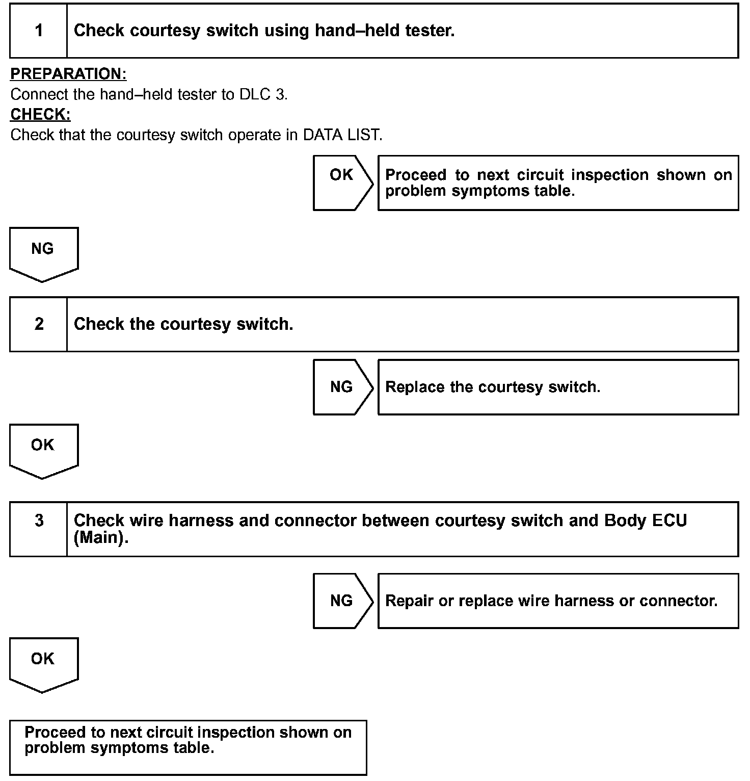 HINT: In case of using the hand-held tester, start the inspection from step 1 and in case of not using the hand-held tester, start from step 2.