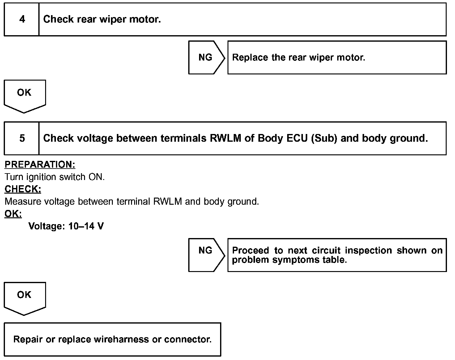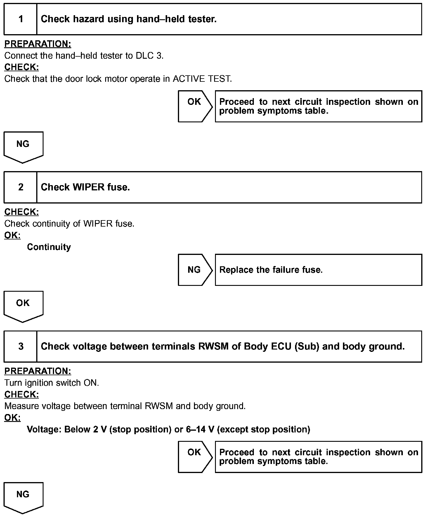 Wiper motor is controlled by the Body ECU (Sub). Even CPU is in the failure, its circuit structure enables to operate the wiper with "High" mode.