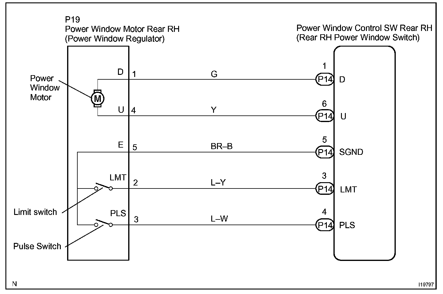 Jam protection limit / pulse switch circuit on rear right doorCIRCUIT DESCRIPTION