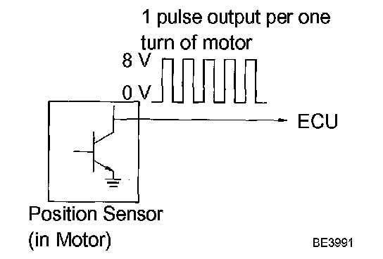 The position sensor detects movement of the seat and sends pulse signals to the ECU. The position sensor sends pulse to the ECU in proportion to the amount of seat movement as shown in the diagram.