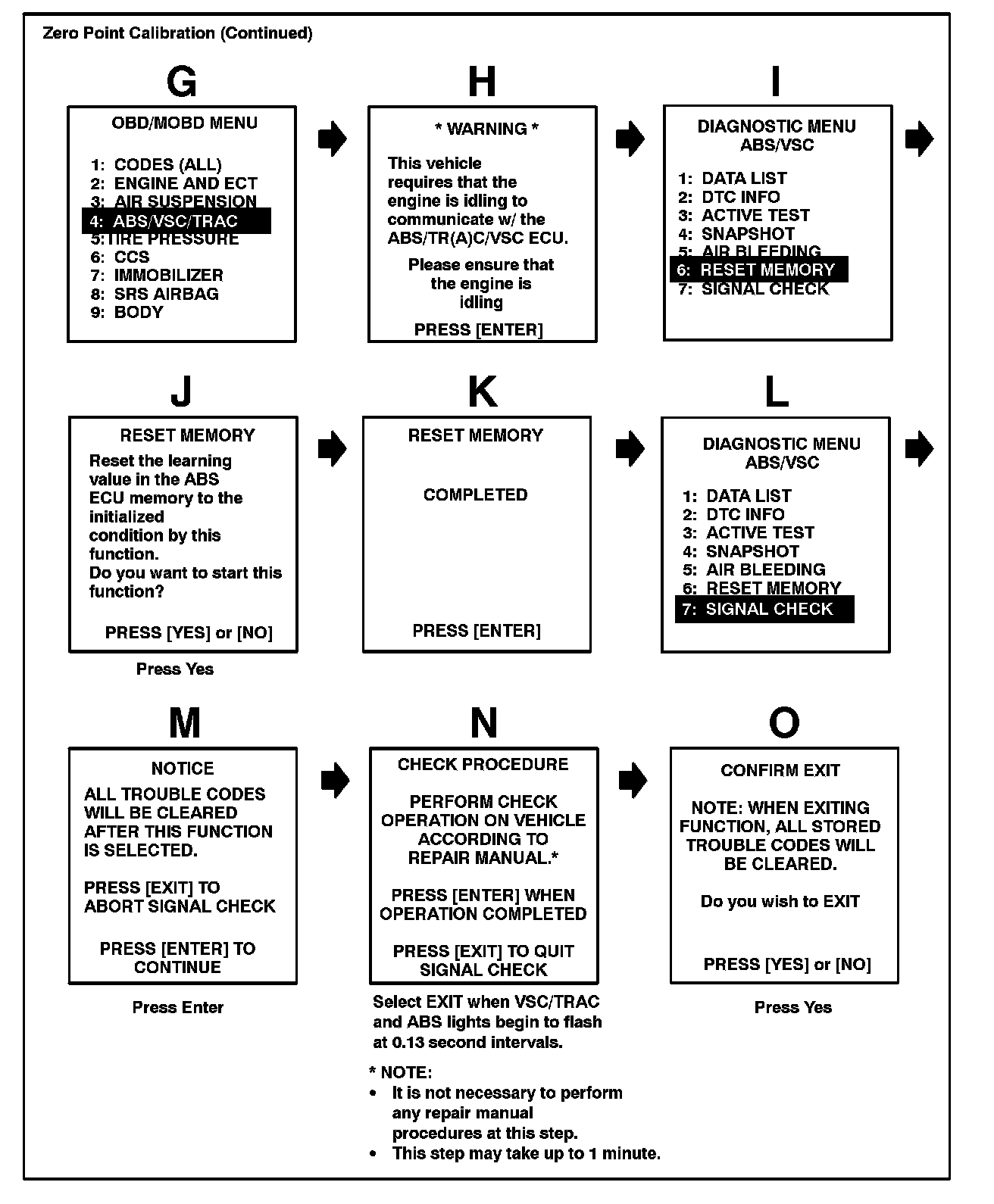 Zero Point Calibration of the above sensors must also be performed when replacing or repairing steering related parts. These steps are necessary for the correct and accurate repair of VSC related systems.
