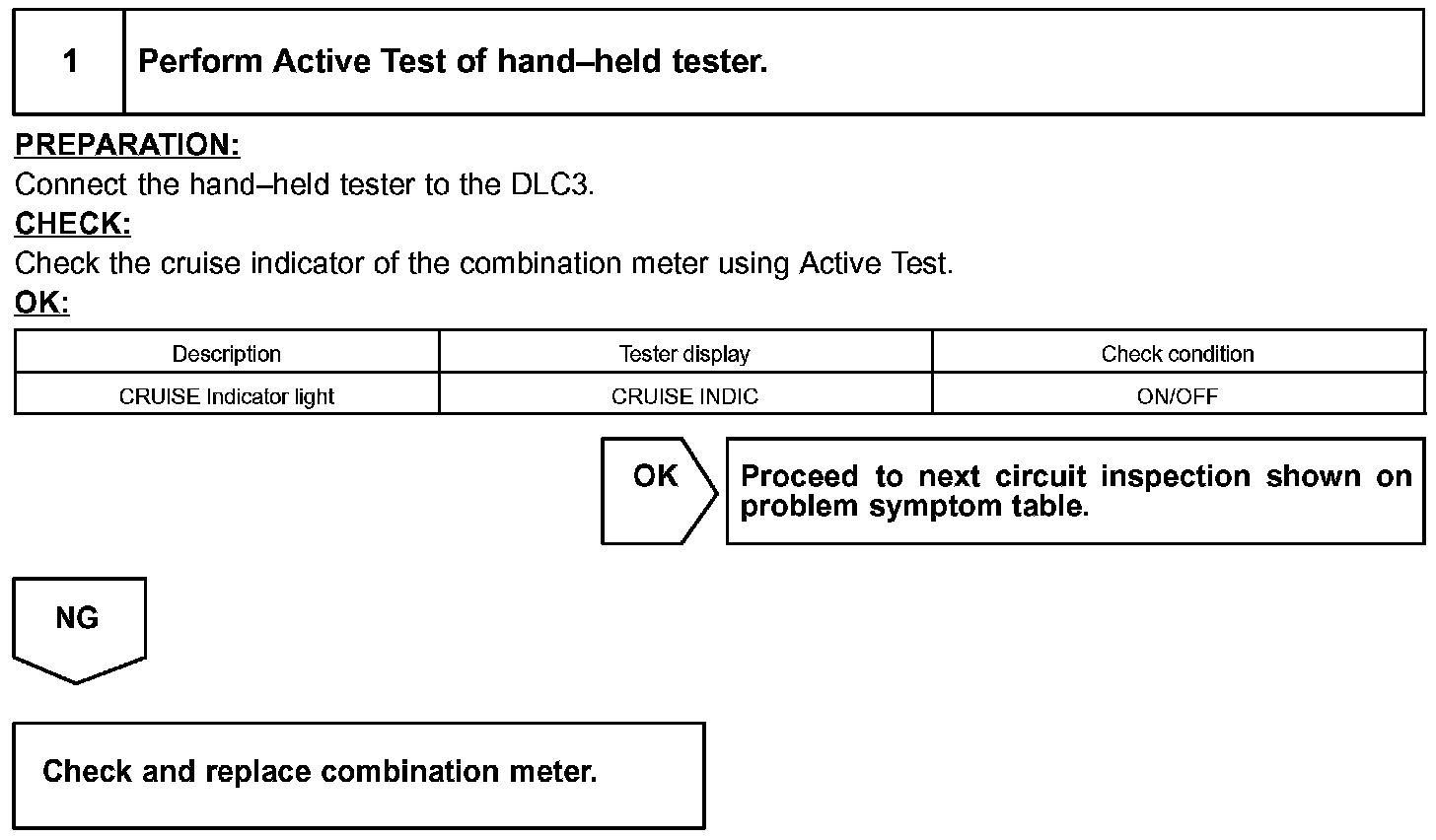 When the cruise control main switch is turned ON, CRUISE MAIN indicator light comes on.
