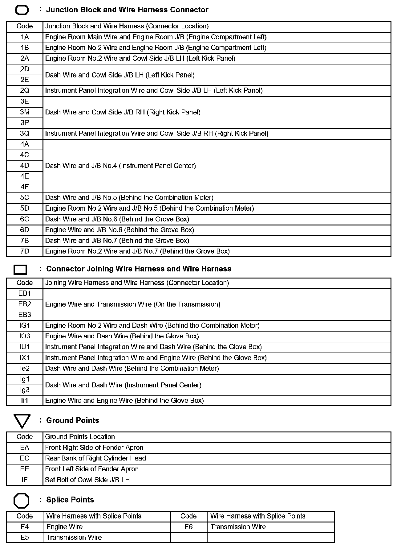 Locations: The locations of components, connectors, ground points, and splices referred to within these diagrams can be found at Vehicle Locations. Locations