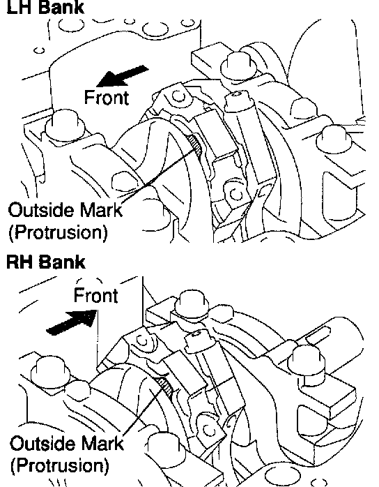 c. Check that the outside mark of the connecting rod cap is facing in correct direction.
