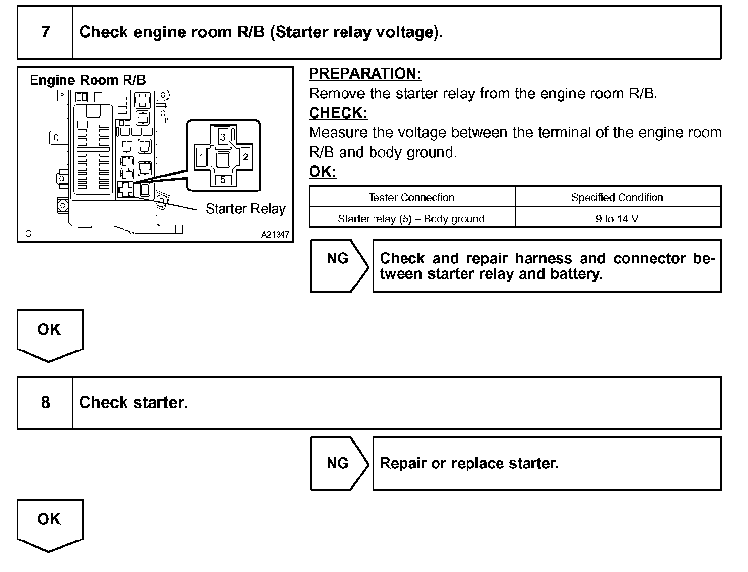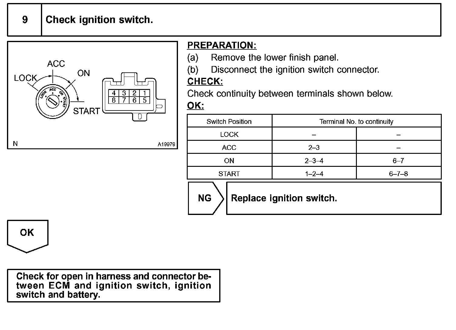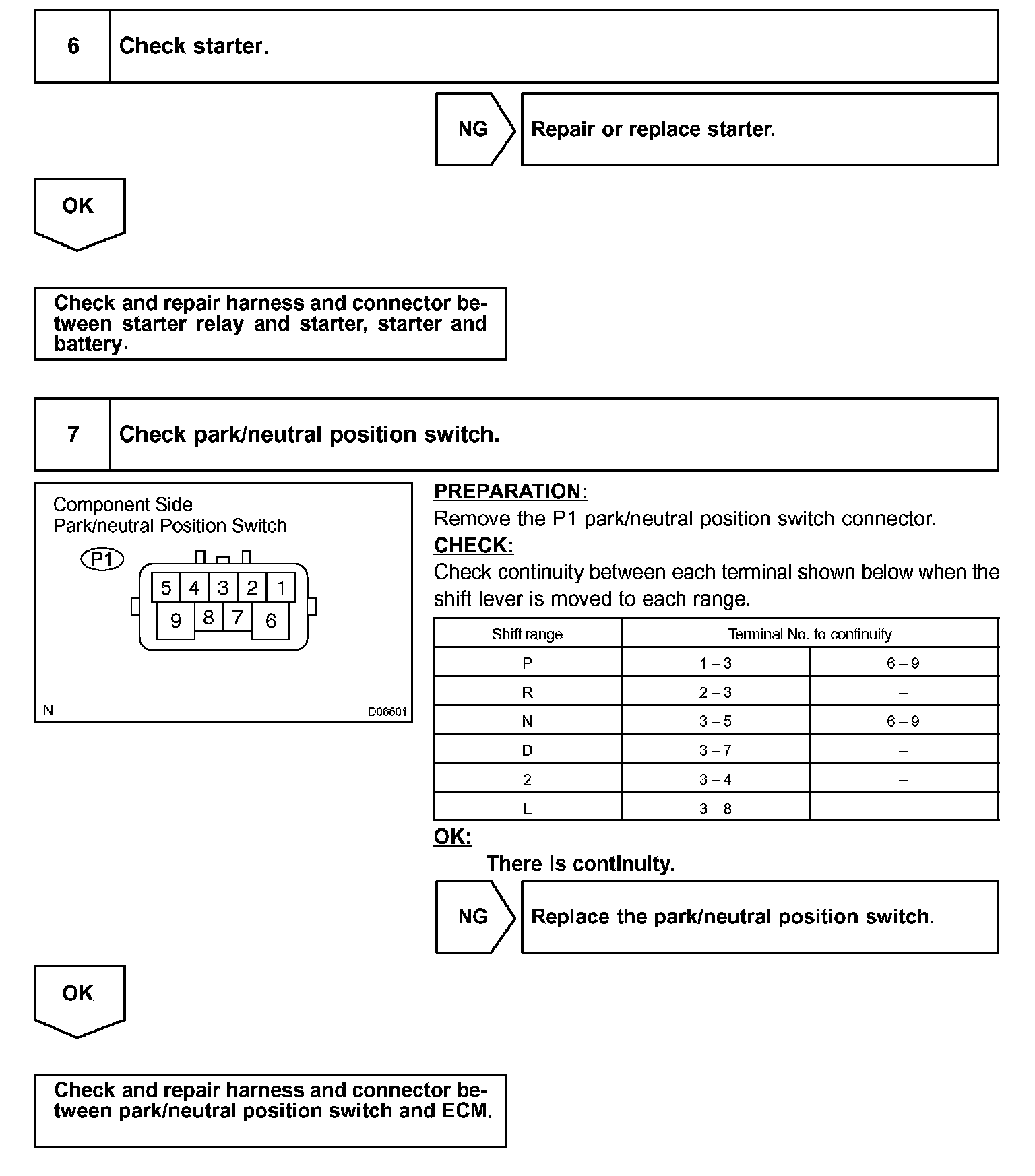 d. Check the connector and terminal.