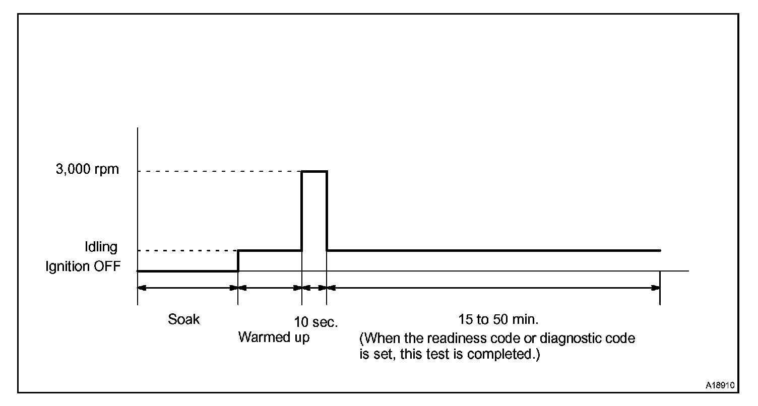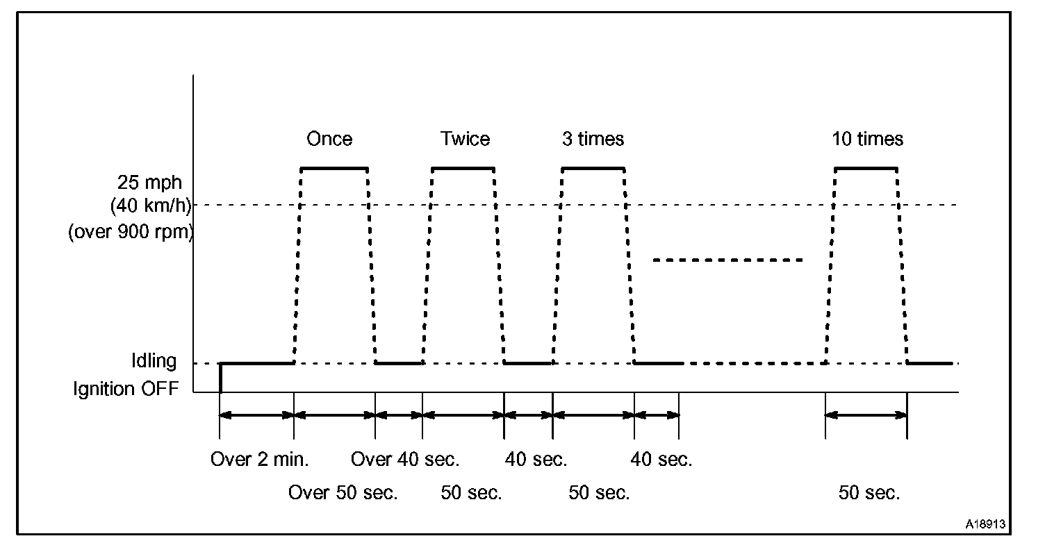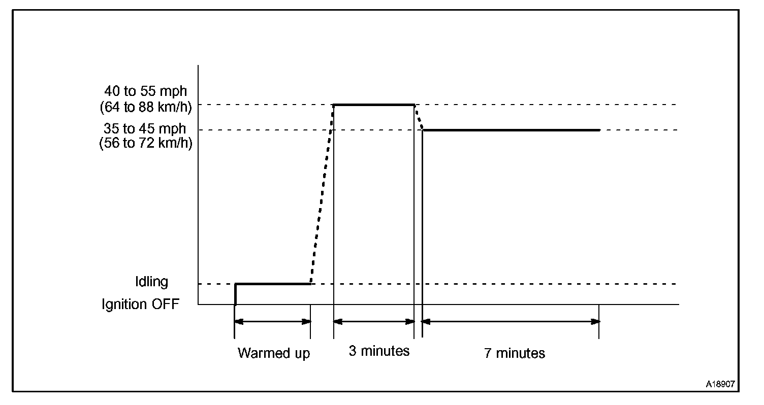 If IAT is less than 10°C (50°F) when engine was started, drive the vehicle at 40 to 55 mph (64 to 88 km/h) for additional 4 minutes.