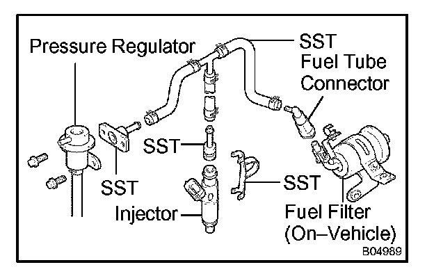 d. Remove SST and fuel tube connector.