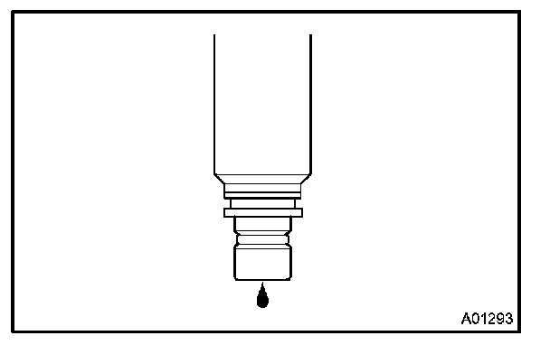 a. In the condition above, disconnect the tester probes of SST (wire) from the battery and check the fuel leakage from the injector.