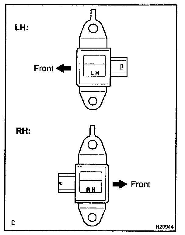 a. Install the front airbag sensor with the arrow on the sensor facing toward the front of the vehicle.