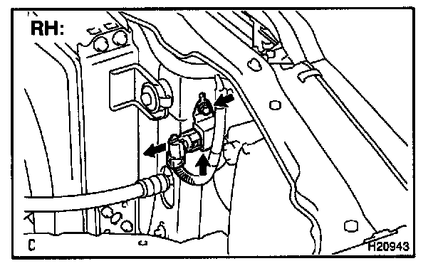 c. Pull the windshield washer tank opening as shown in the illustration.