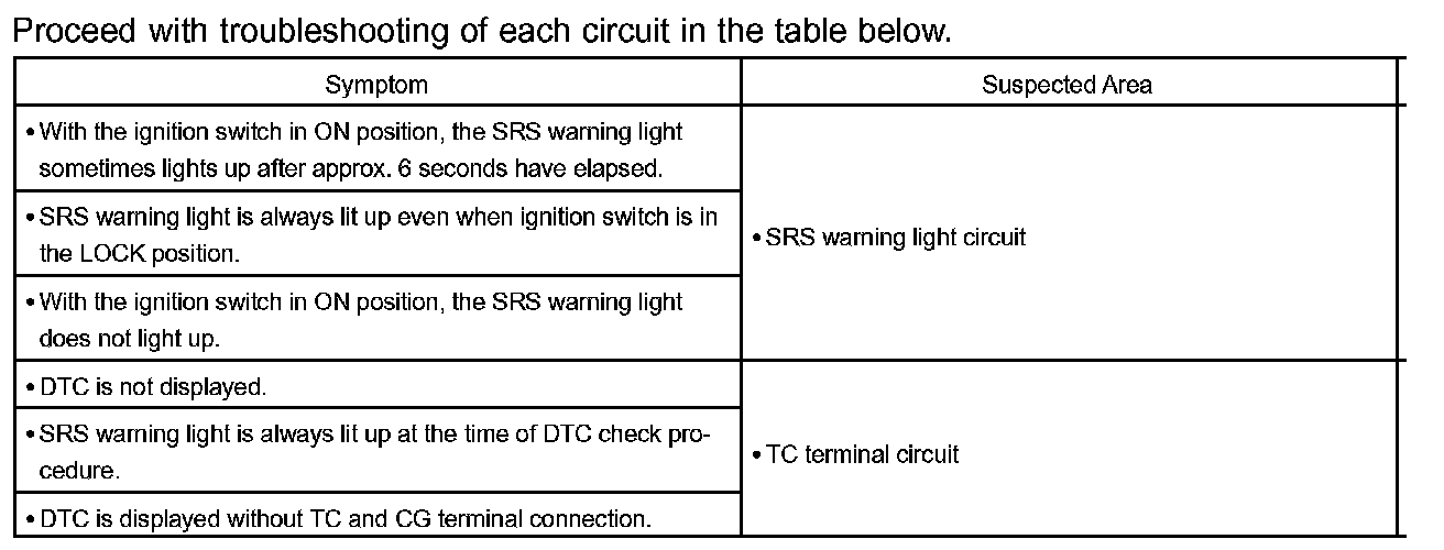 Problem Symptoms Table: