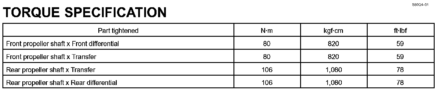 Propeller Shaft - Torque Specification: