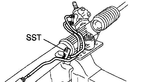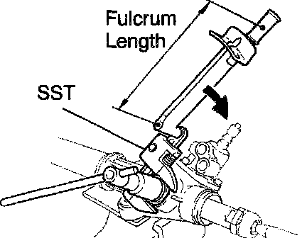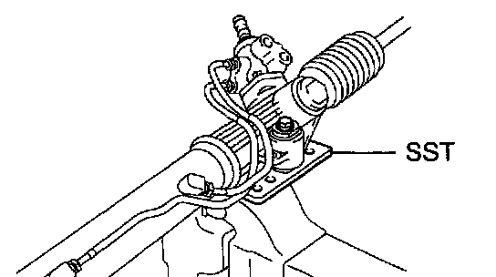 b. Using a spanner to hold the steering rack steady, and using SST, torque the rack end.