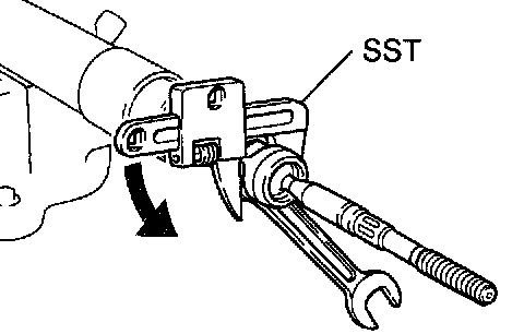 b. Holding the rack guide spring cap rotating, and using SST, torque the nut.