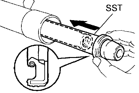 e. Carefully slide the tapered end of SST over the rings until the ring fits to the steering rack.