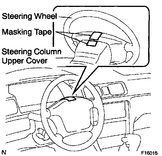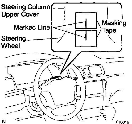a. Apply masking tape on the top center of the steering wheel and steering column upper cover.