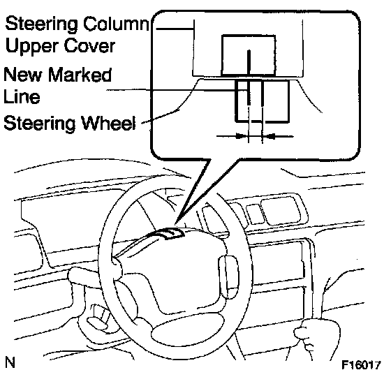 e. Draw a new line on the masking tape of the steering wheel as shown in the illustration.