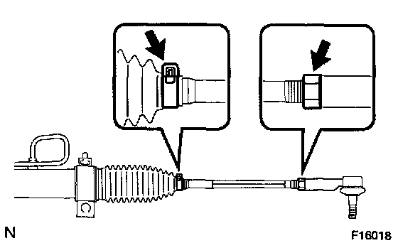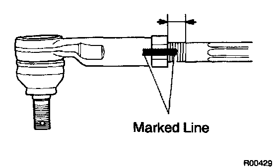 a. Draw a line on the RH and LH tie rod and rack ends where it can easily be seen.