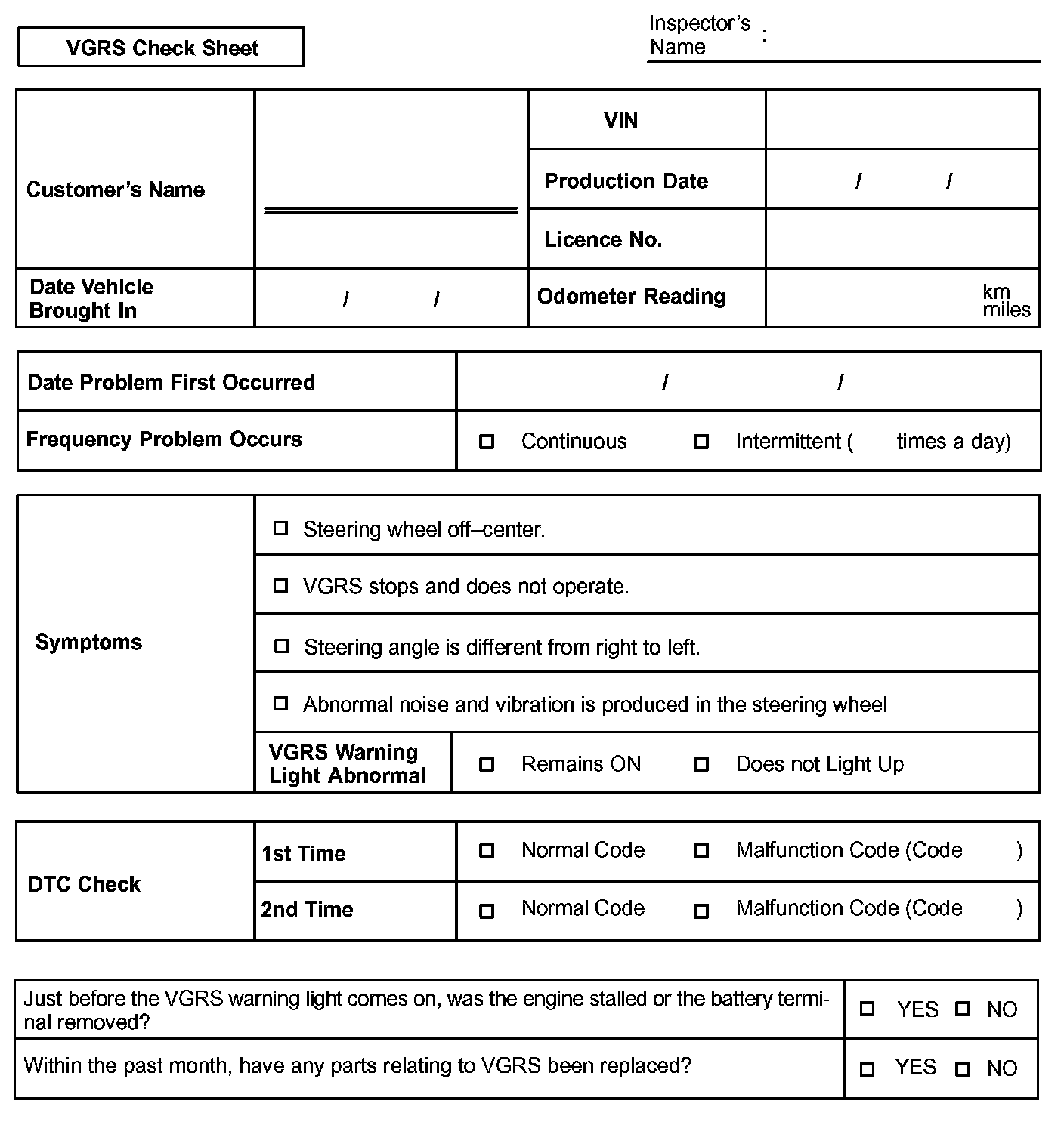 VGRS Check Sheet: