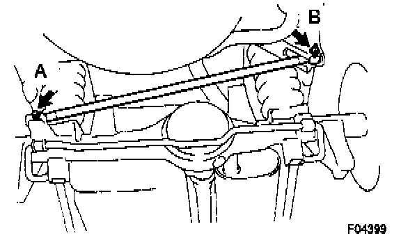 Remove the 2 bolts, nut, washer and lateral control rod.