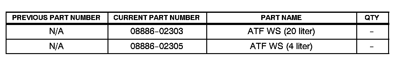 ^ If WS is filled into a non-WS automatic transmission, the fluid could leak out under high temperatures (approximately 284°F (140°C).