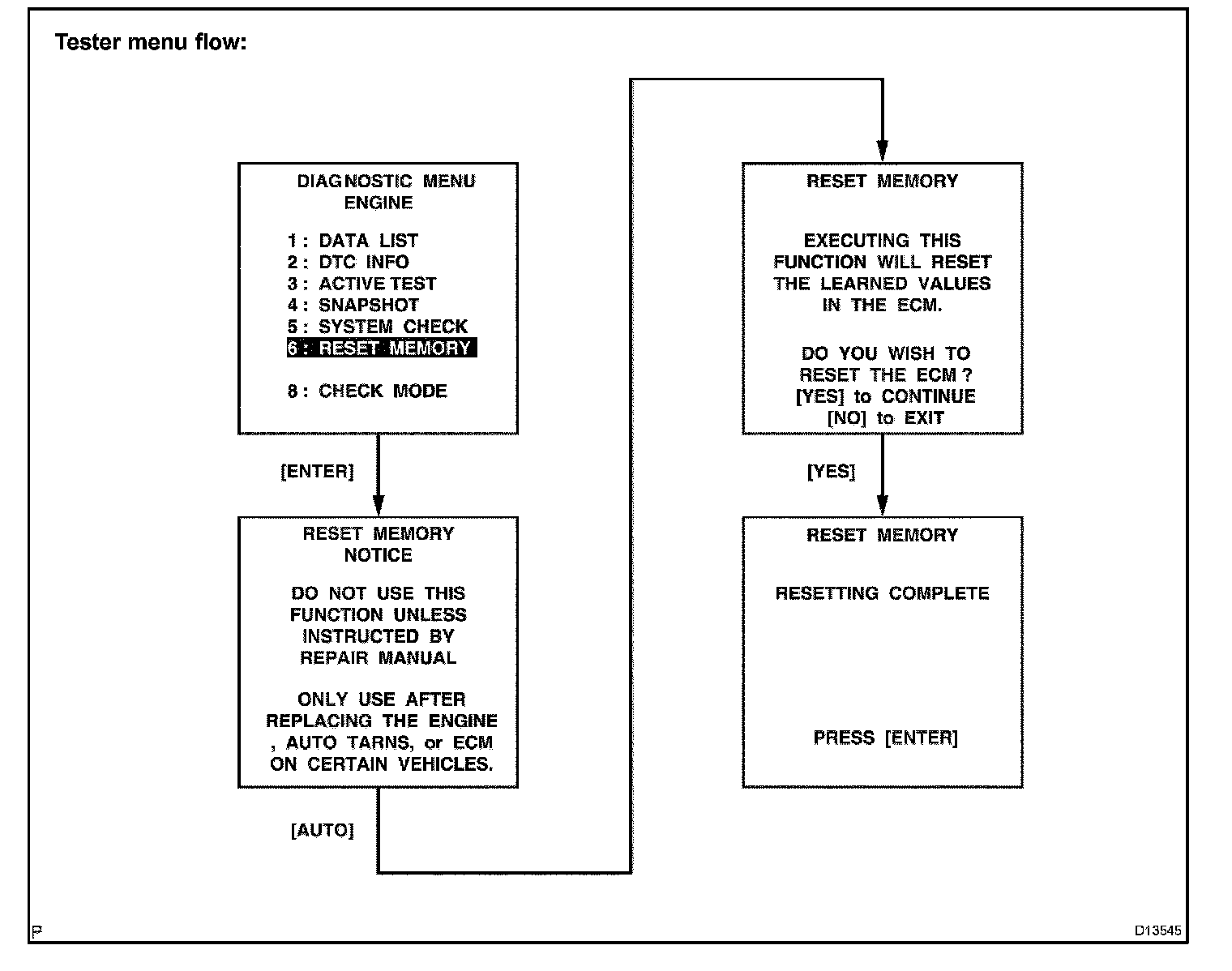 CAUTION: After performing the RESET MEMORY, be sure to perform the ROAD TEST described earlier.